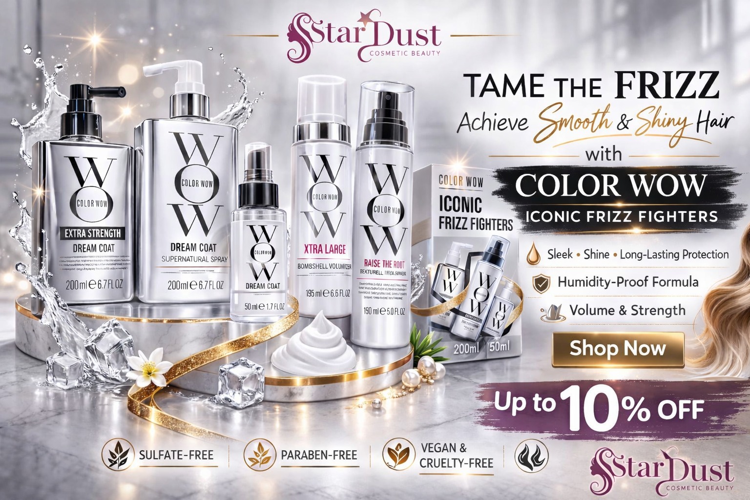 We believe that true beauty is boundless and meant to shine. Our mission at Stardust is to provide high-performance, accessible quality products that empower you to express your unique light and feel fiercely confident in your own skin.