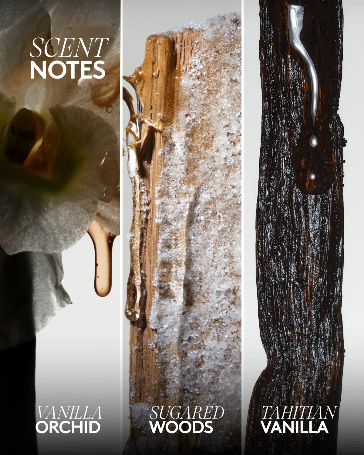 - Vanilla Flowers: Meet the softer side of sexy. Tahitian Vanilla and Vanilla Orchid combine with Fluffy Musk and Sugared Woods for that just-right mix of sultry + sweet that plays well any time of day.